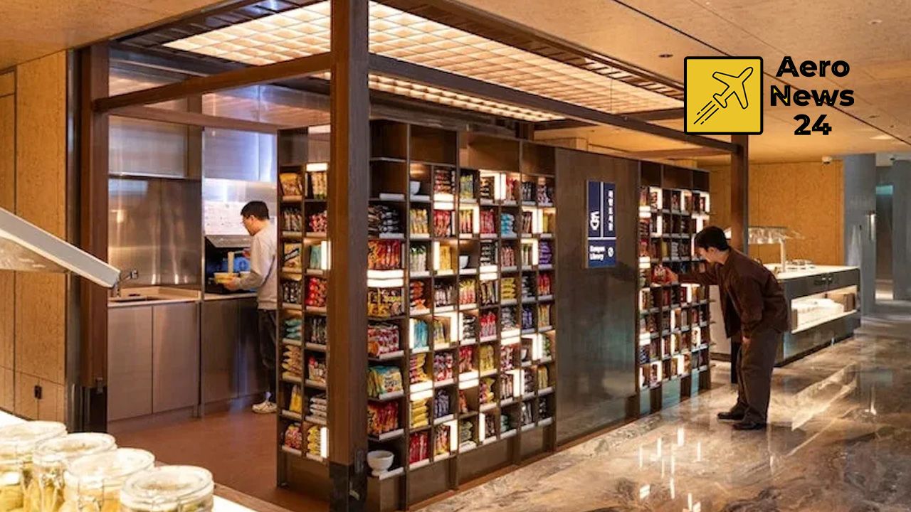 Ramyeon Kütüphanesi: Yolcuların kendi hazır eriştelerini seçip otomatik makinelerde pişirebildiği self-servis alan.